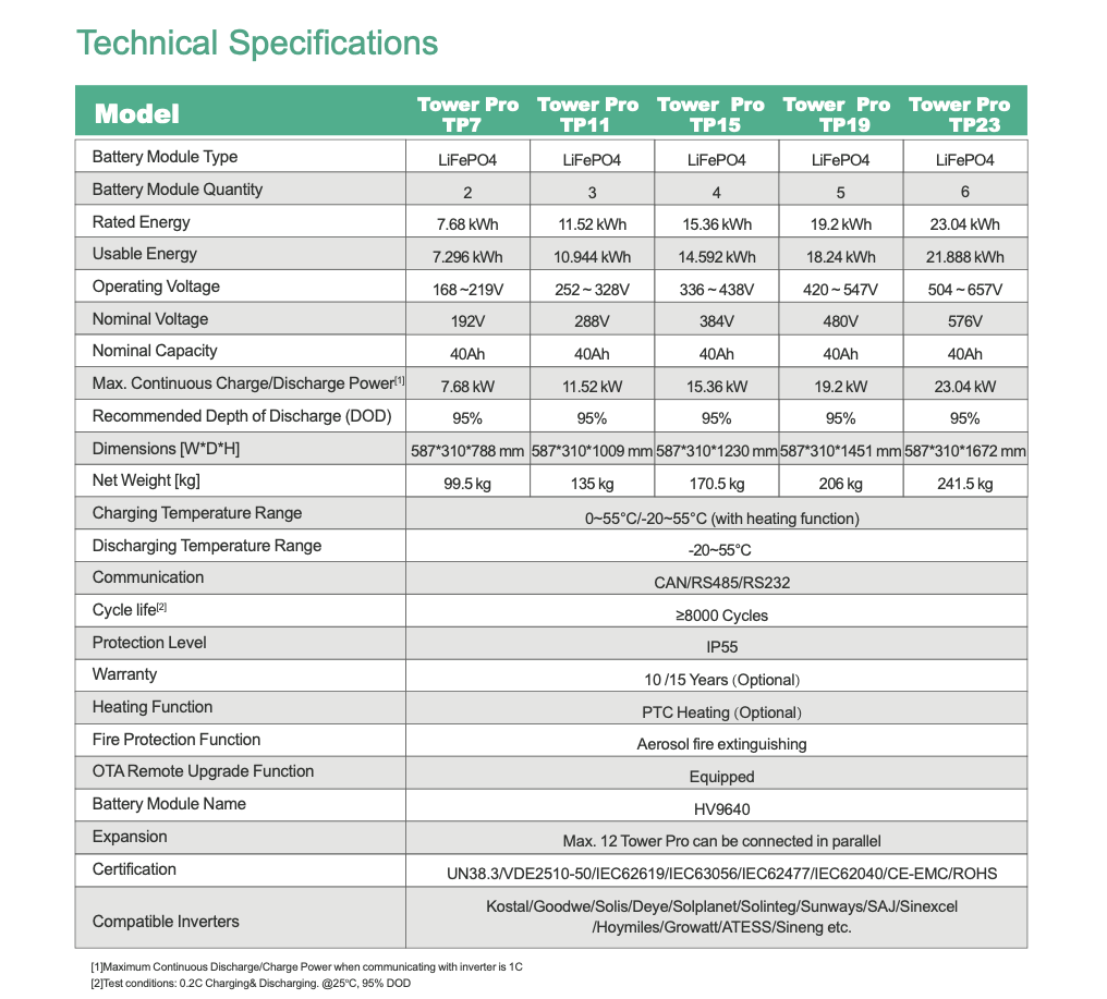 Das Hybrid-Komplettsystem mit dem dreiphasigen Wechselrichter Solis S6-EH3P (12–20)K-H und dem modularen Dyness Tower Pro Batteriespeicher ist eine ideale Lösung für große Photovoltaikanlagen. Es vereint hohe Effizienz, Kompatibilität mit Wärmepumpen und Generatoren sowie eine außergewöhnliche Erweiterbarkeit auf über 270 kWh. Perfekt für anspruchsvolle Haushalte, kleine Unternehmen und kommerzielle PV-Projekte.