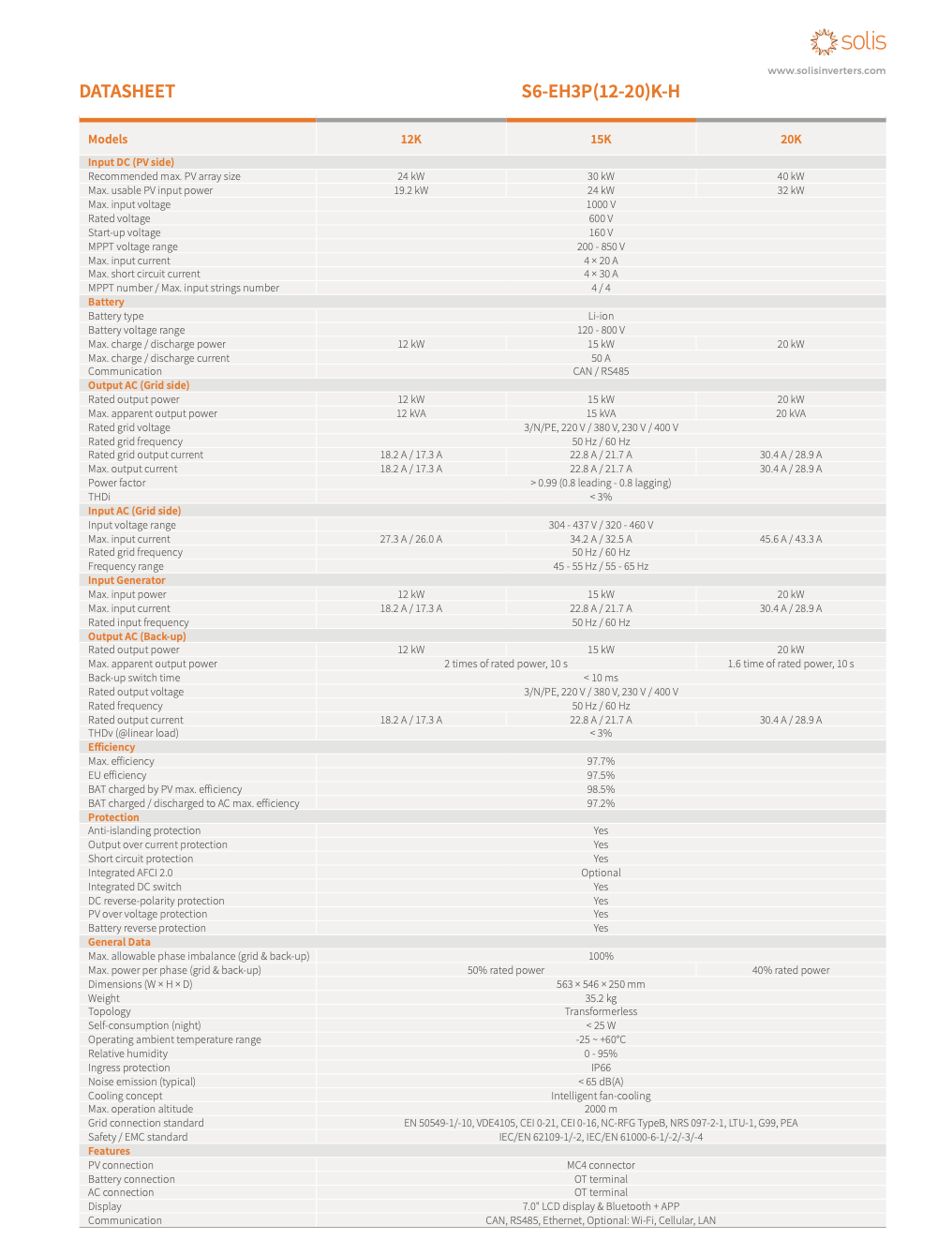 Wechselrichter Typ Hybrid 3 Phase WLAN-Modul Ja Anzahl der MPPT 4 Leistung 10-15 kW Garantie 5 Jahre